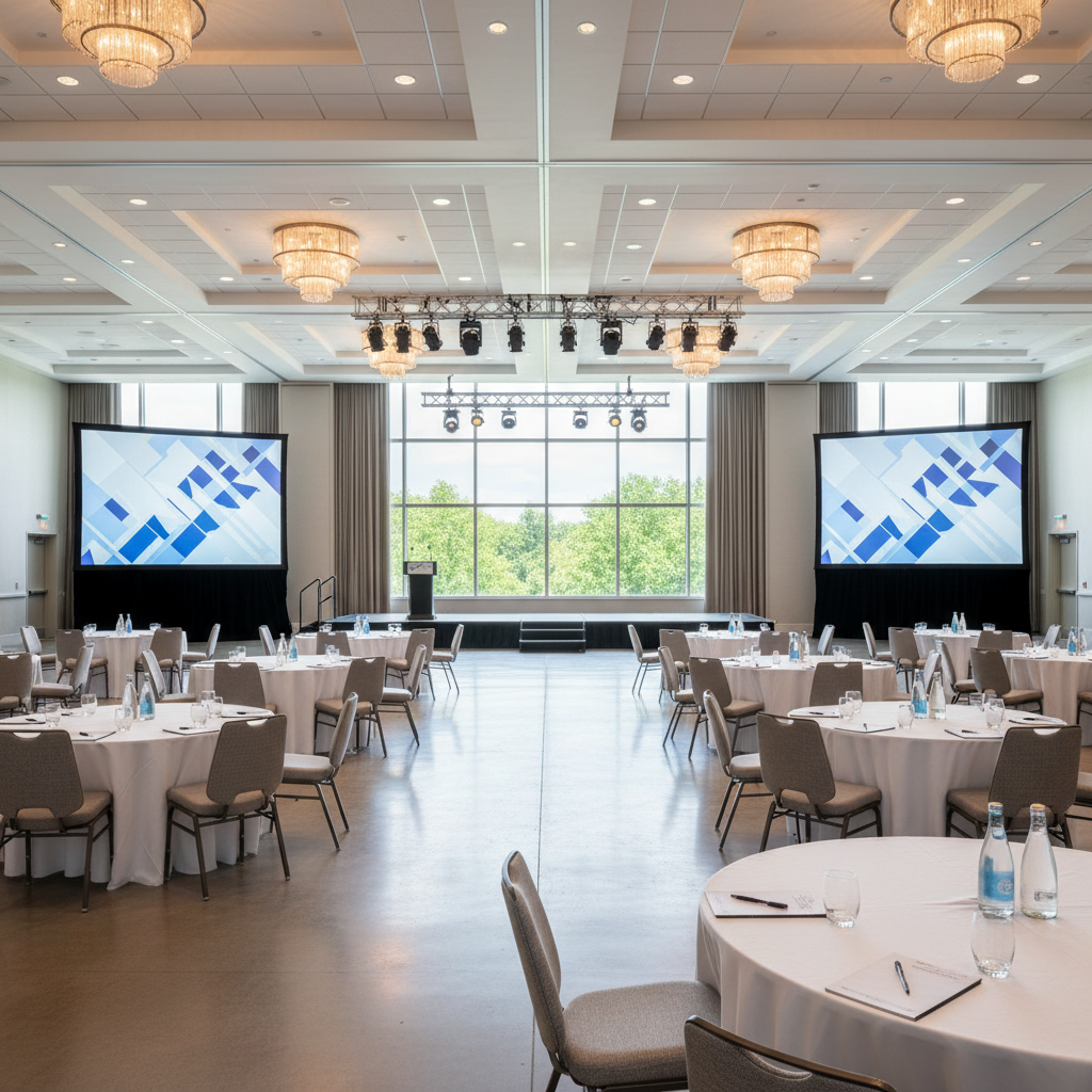 - Confirm AV & staging: Screens, projectors/LED walls, mics, mixers, lighting, confidence monitors, and technicians.